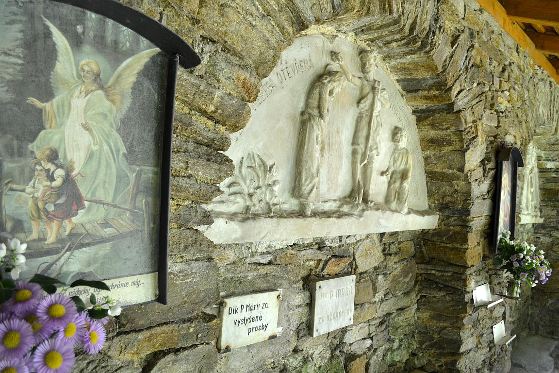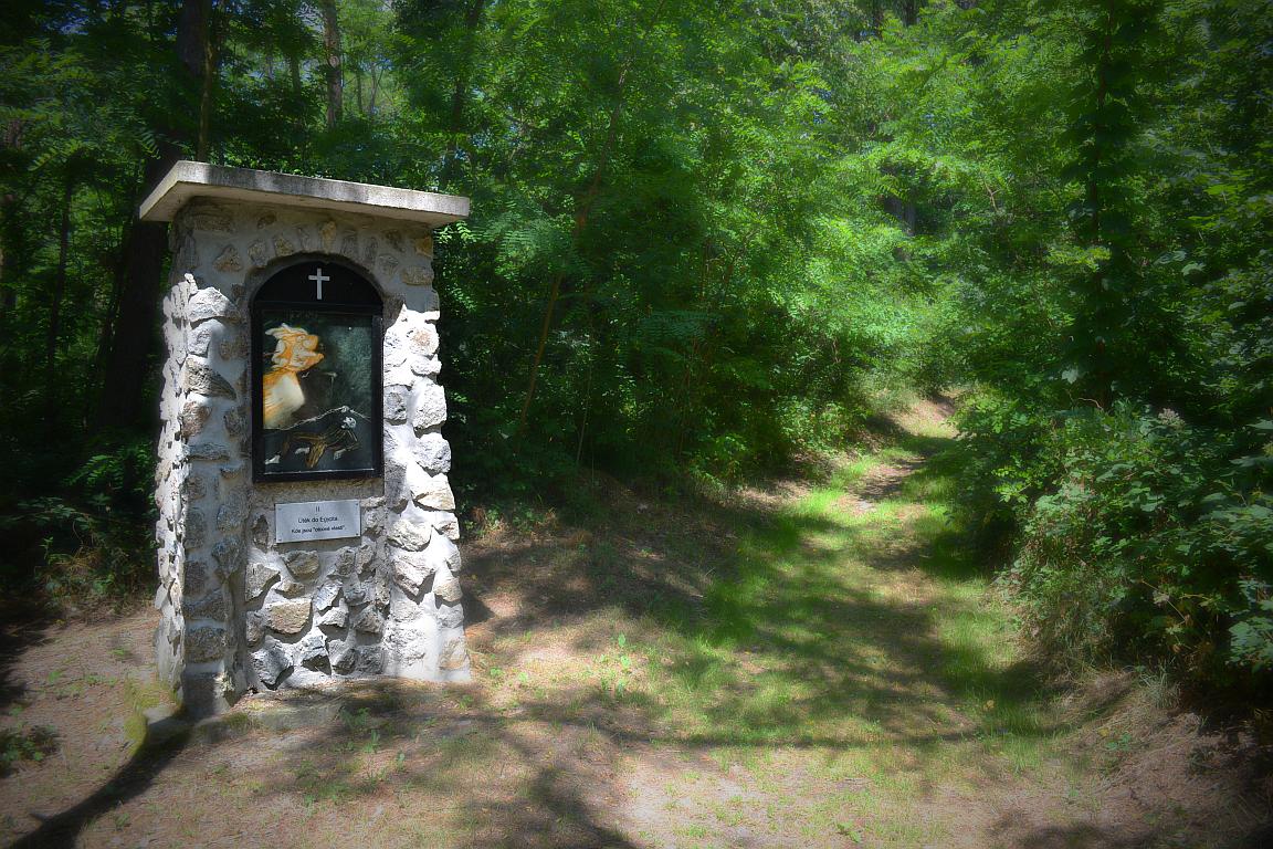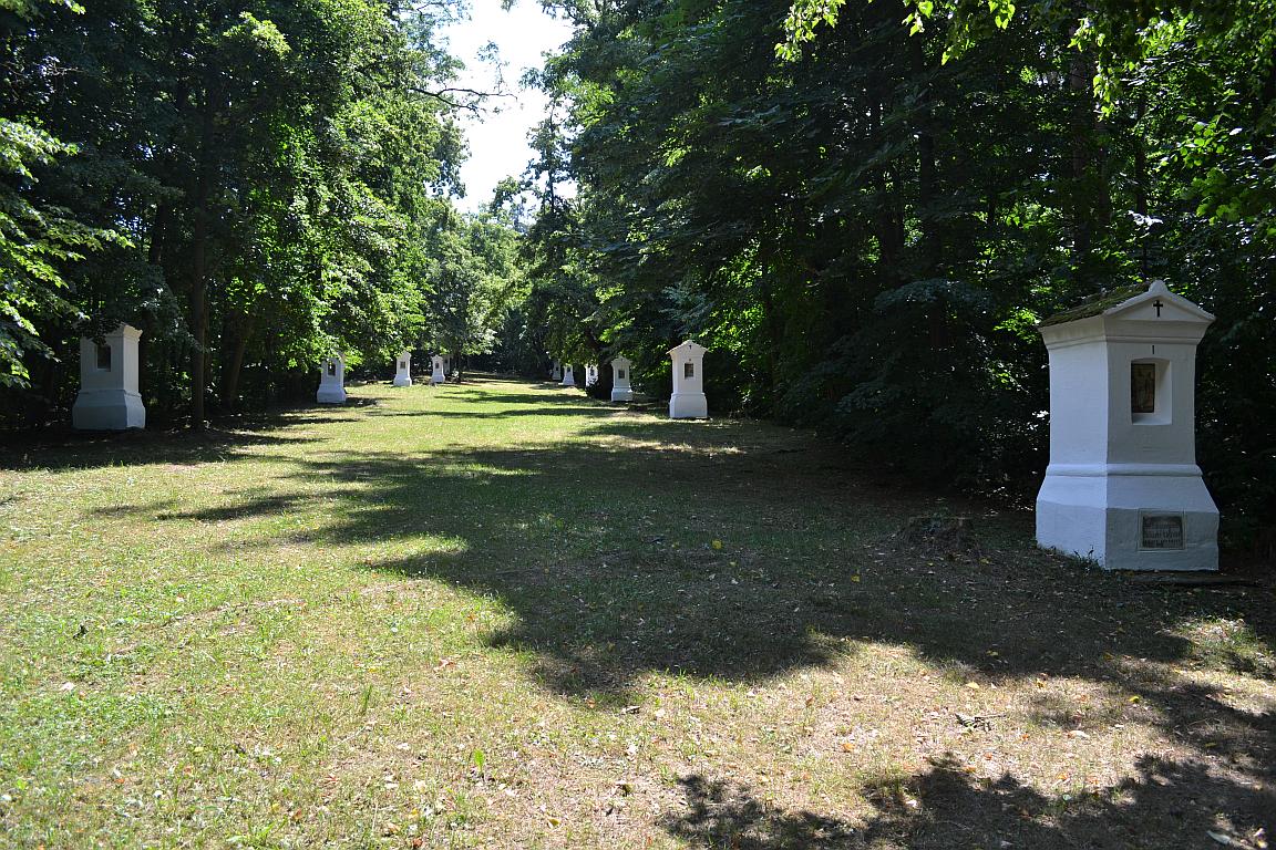 Pokud se vydáte ke křížové cestě z údolí, půjdete lesíkem, jehož stromy zdobí obrazy různých poutních míst z Čech, Moravy i Slezka, ale i Slovenska a Rakouska. Krom toho můžete projít i Stezky Panny Marie Bolestné, jejíž zastavení namalovala světoznámá malířka Bedřiška Znojemská. Ta se věnuje sakrálnímu umění dlouhodobě a vy můžete navštívit také její další monumentální dílo, Křížovou cestu v Jiřicích u Mor. Budějovic.